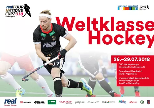 23.07.2018 - Für den real FOUR NATIONS CUP 2018 in Düsseldorf ist der Vorverkauf beendet worden. Der Olympiadritte Deutschland empfängt vom 26. bis 29. Juli auf der Anlage des Düsseldorfer HC (Am Seestern 10) den Olympiasieger Argentinien, den EM-Dritten von 2015 Irland sowie Frankreich, den Olympia-Gastgeber 2024. Gespielt wird Donnerstag, Freitag – jeweils am frühen Abend – sowie am Sonntag. Eintrittskarten gibt es nun nur noch an der Tageskasse, aber da sind in allen Kategorien und an allen Tagen noch reichlich Tickets vorhanden.