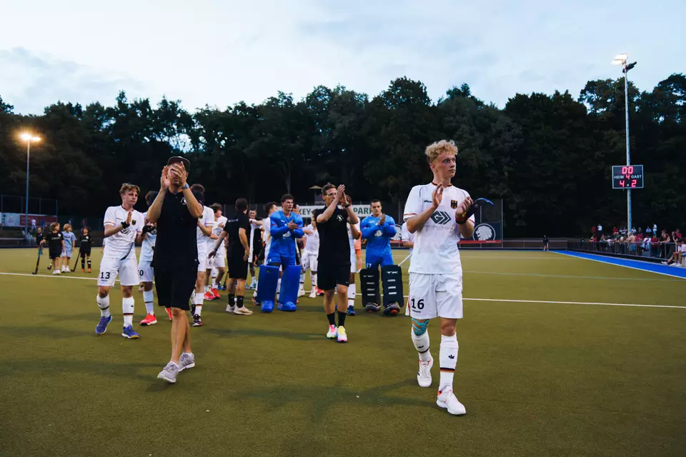 Trotz zweier Rückstände ließen sich die deutschen U16-Jungen nicht davon abbringen, am Ende des Halbfinals gegen Spanien die Nase vorne zu haben. Und nach dem deutschen 3:3-Ausgleichstreffer 30 Sekunden vor Ende gelang im Shoot-out ein 3:2-Sieg, der das deutsche Team ins Finale führte. Dort wartet am Sonntag (13:00 Uhr) die Niederlande. Maximilian Langer (6.), Nicolaus Hansen (36.) und Noah Lund (60.) haben sich in die Torschützenliste eingetragen. Im Shoot-out konnte Jasper Ditzer die Spanier zu drei Fehlversuchen verleiten, während auf deutscher Seite lediglich Neuhaus und Babic scheiterten. So sorgten Tore von Hansen, Gomes und Langer zum 3:2-Sieg – und für großen Jubel auf der Anlage des SC Frankfurt 80.
