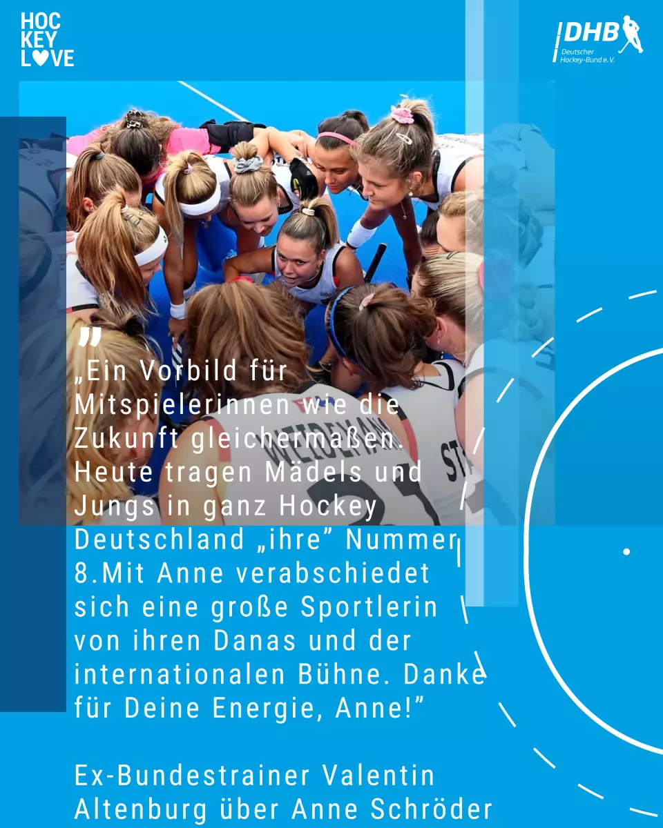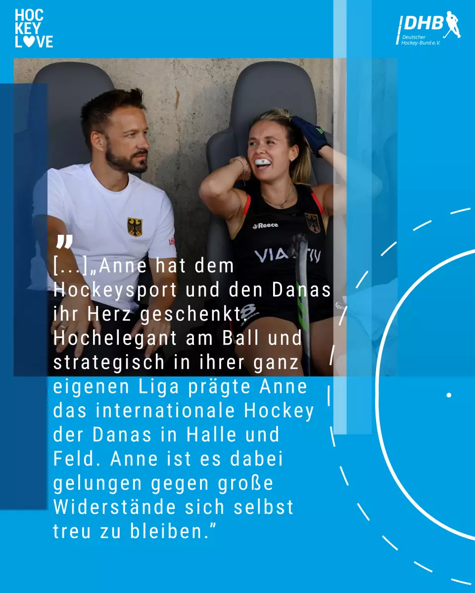 Emotionalitat, Siegeswille, Touch - sind nur einzelne Schlagwörter die mir einfallen, wenn ich an Anne denke! Ich hatte das Glück nicht nur in der Nationalmannschaft, sondern auch im Verein gemeinsam den Platz zu teilen - und mit Anne war klar - wir brauchen keine Kommandos es war blindes Verständnis!! Das erlebt man nicht alle Tage und machte es für unsere Gegner umso schwerer. Ihre Zocks im Zentrum und dann die Stürmer in Szene zu setzen bleiben für die Ewigkeit! Liebend gerne hätte ich mit ihr in der Halle nochmal gemeinsam die Gegner geärgert.