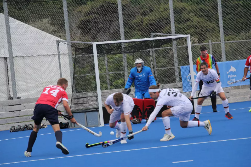 In einem entscheidenden dritten Gruppenspiel der Ü35 Hockeyweltmeisterschaft setzte sich Deutschland mit 2:0 (2:0) gegen Frankreich durch und hielt damit seine Hoffnungen auf eine Halbfinalteilnahme am Leben.