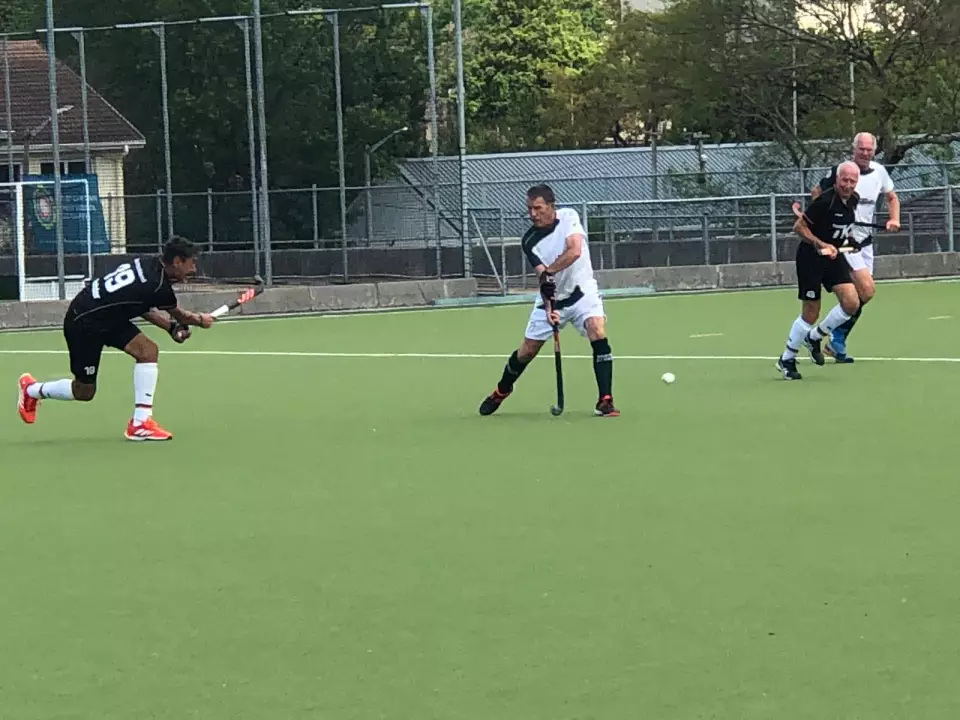 war in der ersten Halbzeit nicht gut. Torhüter Volker „Ente“ Geisler hielt überragend gegen die Schotten und wurde noch während des Spiels zum MVP bestimmt. Dennoch stand es 0:2 zur Halbzeit. In der beiden letzten Vierteln besann sich das O65 Team auf ihr Kontaktspiel, Vororientierung und hielt gegen die britische Härte dagegen. Zwei schön herausgespielte Tore von Adi Rehder und Hennes Jednat zum 2:2 waren die Folge. drei grüne und eine gelbe Karte steigerten nur die Kampfkraft. Mit diesem Unentschieden wurde der zweite Platz in der Gruppe C erreicht. Ein Wunschergebnis der Hockey-Mathematiker, da man so den vermeintlich favorisierten Holländern, Engländern und Australiern im Viertelfinale aus dem Weg gehen könnte. Vermeintlich; die nächsten Tage werden es zeigen.