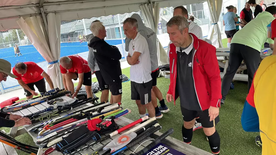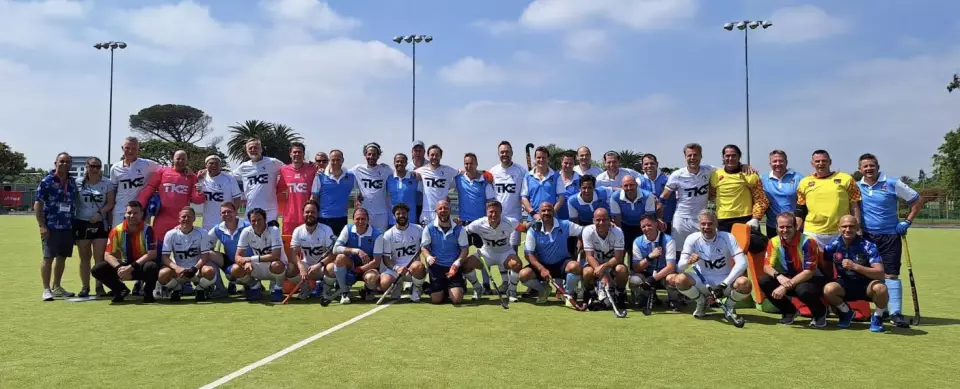 Die M 60 auf dem Weg nach Auckland Schon bei Bekanntgabe des Austragungsortes war klar, dass nicht alle Spieler diese weite Reise auf sich nehmen werden. Dies stellte das Trainerteam und die Mannschaftsführung vor eine große Aufgabe, die unerwartet neue Türen geöffnet hat. Auch wenn viele altgediente Masterspieler sich frühzeitig gegen eine Teilnahme ausgesprochen haben, fand sich schnell ein harter Kern, der die Reise nach Neuseeland fokussierte. Bei Lehrgängen in Bietigheim, Bonn und einem internationalen Turnier in Tilburg konnte sich das neu formierte Team schnell finden und zusammenwachsen. Gesundheitliche und verletzungsbedingte Ausfälle stellten das Team jedoch immer wieder vor neue Herausforderungen, die dazu führten, dass u. a. beim Regiocup in Lüneburg neue Masterspieler akquiriert wurden. Nach dem Lehrgang in Potsdam konnte dann endlich der finale Kader mit 18 Spielern benannt werden, der sich beim Abschlusslehrgang in Brüssel in Länderspielen gegen die Belgier den letzten Feinschliff holte. Mit vielen Masterneulingen startet das M60 Team nun gut vorbereitet in die WM in Auckland und freut sich auf viele unvergessliche Erlebnisse.