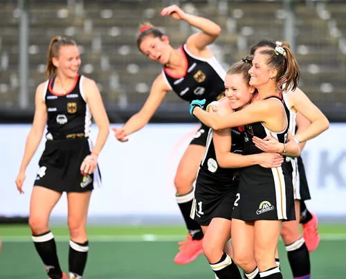 11.06.2021 - Die deutschen Hockeydamen haben nach hartem Kampf gegen Spanien das Halbfinale der EM in Amsterdam mit 4:1 (1:1) gewonnen. Das DHB-Team hatte in der ersten Hälfte, trotz frühen Führungstreffers durch Pieper, große Probleme mit den aggressiven Spanierinnen. Bis zum 1:1 zur Pause waren die das bessere Team. Dann nutzte Zimmermann genau zum richtigen Zeitpunkt die zweite Ecke zur erneuten Führung. Und die gaben die Deutschen nicht mehr her, bis Maertens und Schröder in der Schlussphase zwei Kontertore zum 4:1-Endstand erzielten. Gegner der Deutschen am Sonntag um 12.30 Uhr im Finale sind – ebenso wie am Samstag im Herrenfinale – die Niederlande.