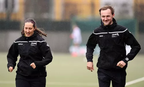 Nach einem Sololauf von Charlotte Stapenhorst gab es die nächste Ecke, die „Stapy“ nach Variante über Selin Oruz zum 2:0 (35.) nutzen konnte. Und die DHB-Damen hätten noch weiter erhöhen können: Franzisca Hauke und Elisa Gräve leiteten die nächste Großchance ein, mit der Alisa Vivot aber an der Torfrau der Gäste scheiterte. Kira Horn und Gräve bereiteten für Hannah Gablac vor, die aber auch nichts Zählbares kreieren konnte.