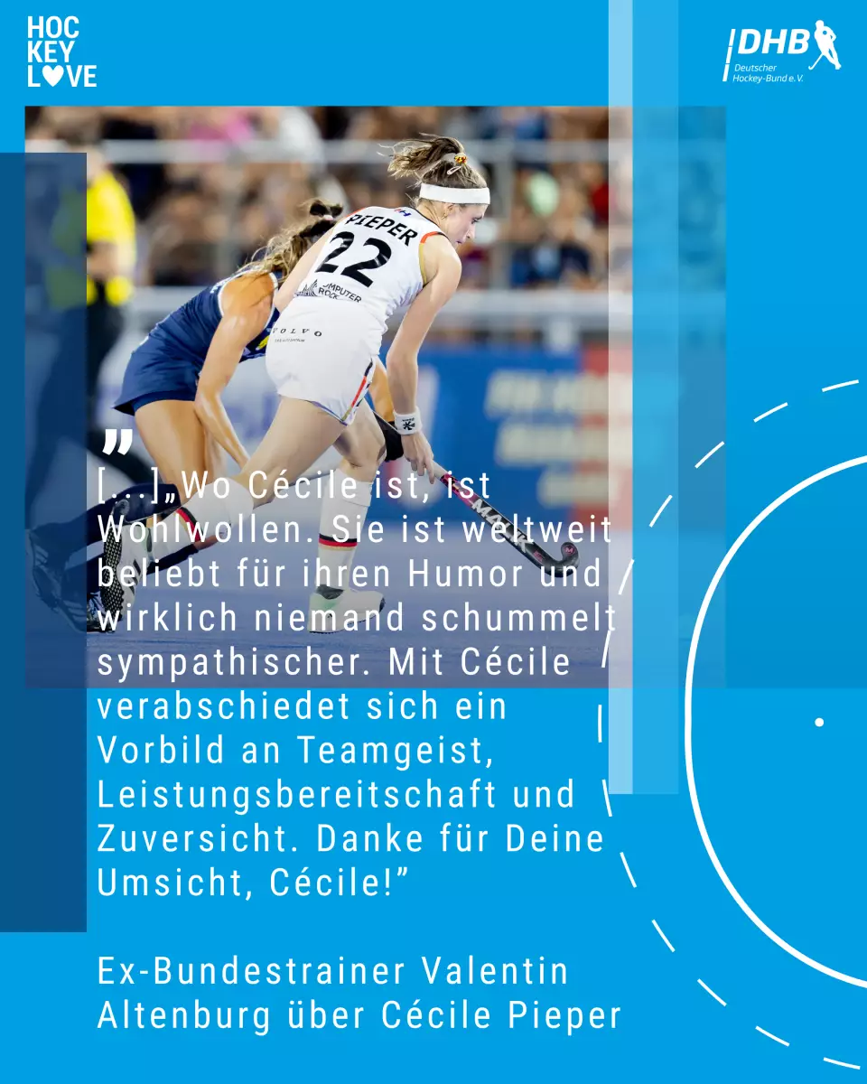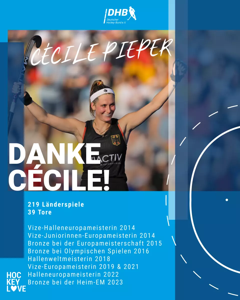 Cécile Pieper, bekannt für ihren bedingungslosen Einsatz und ihre Leidenschaft auf dem Spielfeld, hat ihren Rücktritt aus der deutschen Hockey-Nationalmannschaft erklärt. Als Verteidigerin zeichnete sie sich durch ihren unermüdlichen Einsatz und ihre Bereitschaft, in jeder Situation alles zu geben, aus.