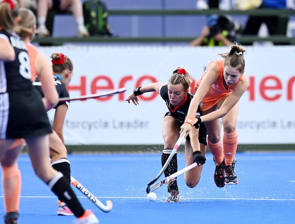 Die Partie begann zurückhaltend und nervös auf beiden Seiten. Nach und nach kontrollierte die Niederlande aber durch viel Ballbesitz und eine stabile Defensive das deutsche Team. Logische Folge war das 1:0 für die Niederländerinnen in der 7. Minute durch Danique van der Veerdonk nach einer Strafecke. Die deutschen Fans vor Ort gaben alles, um das Team zurück ins Spiel zu bringen.