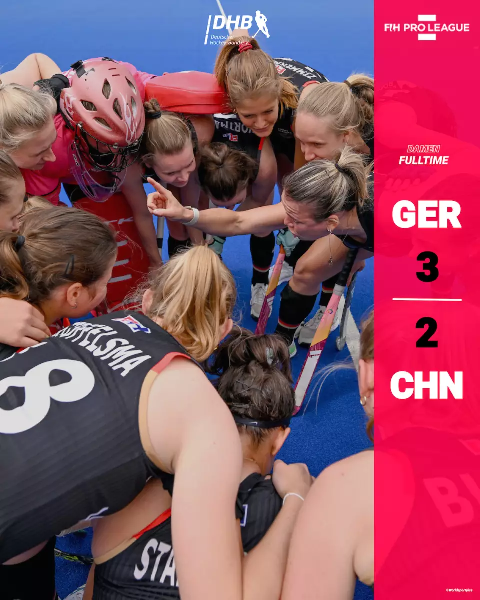 Im vierten Viertel drängen die DANAS auf den erneuten Ausgleich. Eine von Stine Kurz ausgeführte Strafecke parierte die aufmerksame Torhüterin. Ansonsten kam das Team nicht über Torannäherungen hinaus. In der Schlussminute sorgte Ying Zhang mit einem verwandelten Strafstoß für die Entscheidung (60.). Die Pro-League-Tour beendet das Team mit sechs Siegen, einem Remis und einer Niederlage.