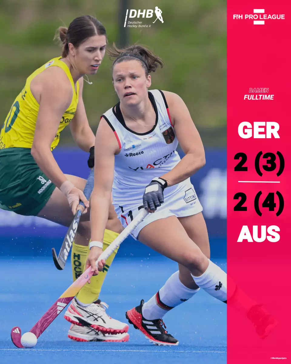 Im Shootout lag Deutschland zwischenzeitlich mit 2:1 in Führung. Brooke Peris hatte auf australischer Seite vergeben. Durch den Fehlschuss von Sara Straus konnten die Australierinnen kurz darauf wieder vorlegen. Nike Lorenz musste beim Stand von 3:4 treffen, um die DANAS im Spiel zu halten. Die Kapitänin scheiterte aber an der Torhüterin. Das Team musste damit die erste Niederlage der aktuellen Pro-League-Reise hinnehmen.