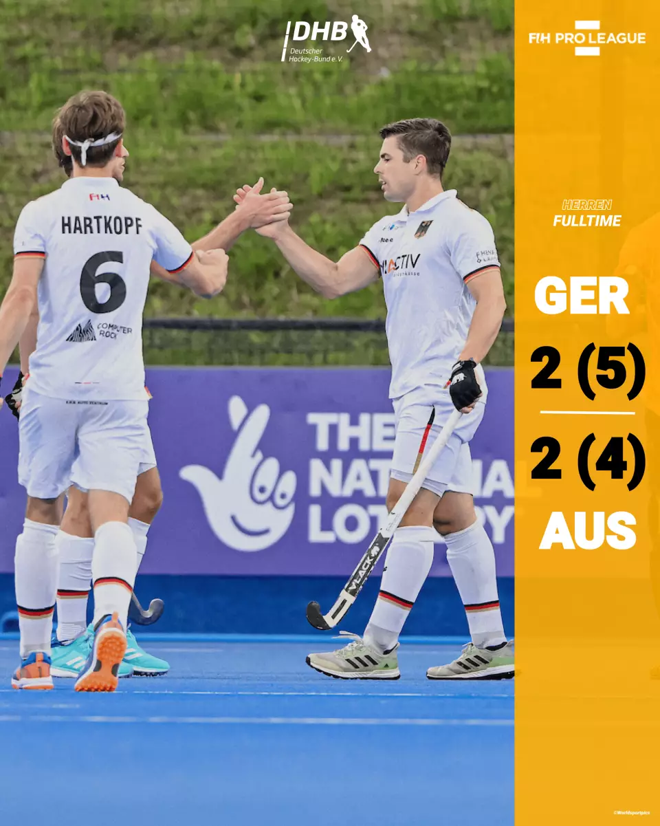 Im vierten Viertel blieb es eine hochspannende Partie, in der sich beide Mannschaften keine weiteren Fehler mehr erlauben wollten. In den Schlussminuten übten die Australier viel Druck aus, das deutsche Team verteidigte die Angriffe aber diszipliniert. Somit blieb es beim 2:2-Remis.