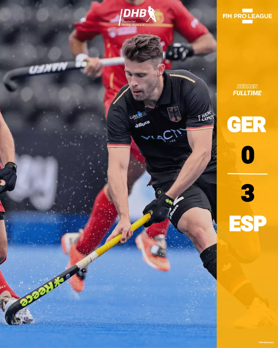 In Hälfte zwei sorgte das deutsche Team abermals per Strafecke für Gefahr. Der wuchtige Schlag von Peillat rauschte knapp am Tor vorbei. Stattdessen legten die Spanier einen weiteren Treffer nach: Alvaro Iglesias bestrafte einen Aussetzer von Tom Grambusch mit dem 1:3 (40.).