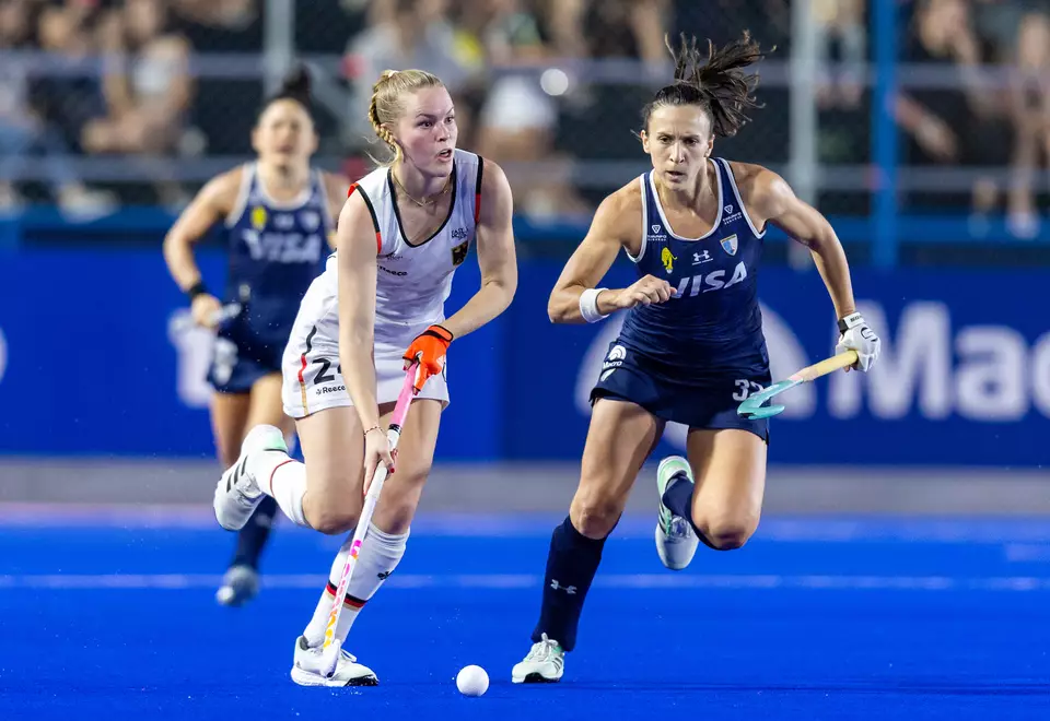 Nach der kurzen Behandlung konnte Selin Oruz in der zweiten Halbzeit wieder mitwirken. Amelie Wortmann musste nach 50 gespielten Sekunden in letzter Sekunde einen Angriff der Argentinierinnen entschärfen. Die Vize-Weltmeisterinnen starteten mit hohen Tempo, mussten dann aber zwei Minuten in Unterzahl spielen, was sie wiederum mutig und offensiv spielten. Die Danas hatten immer wieder hohe Ballgewinne verpassten diese allerdings konsequent auszunutzen. Zur zweiten Halbzeit ging Natalie Kubalski ins Tor und konnte sich nach neun Minuten mit einer starken Parade auszeichnen. Nach einem tollen Spielzug der Danas und einer starken Hereingabe von Kira Horn konnten die Argentinierinnen in der 38. Minute in höchster Not klären. Nach einem starken Kreiseintritt hatte Charlotte Stapenhorst die nächste Möglichkeit, aber auch das dritte Viertel endete torlos: Effiziente und defensiv-starke Danas führten weiterhin mit 1:0.
