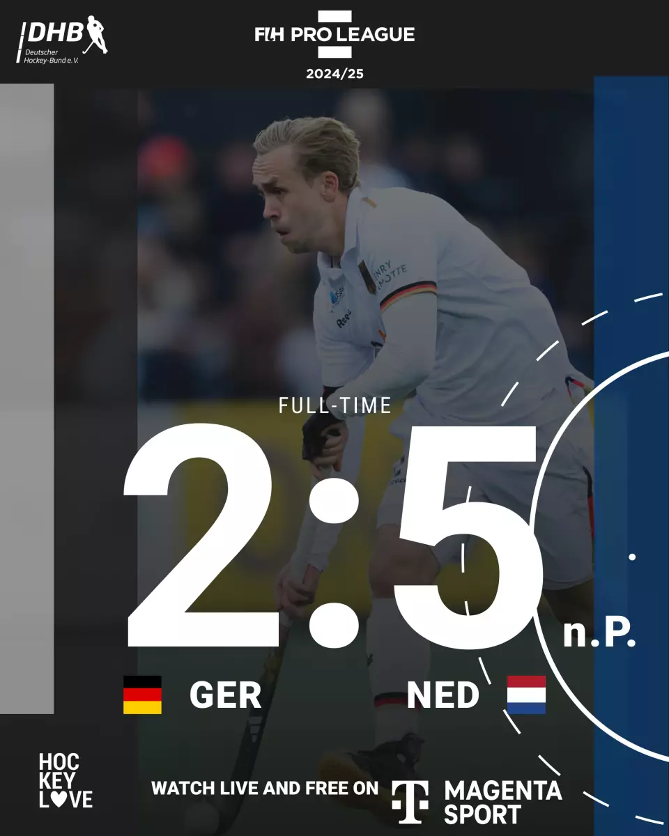 Für Deutschland traf Michel Struthoff, während Hannes Müller und Raphael Hartkopf nicht treffen konnten. Somit gewann die Niederlande mit 4:1.
