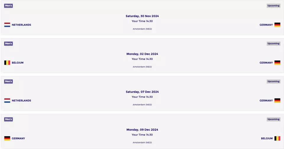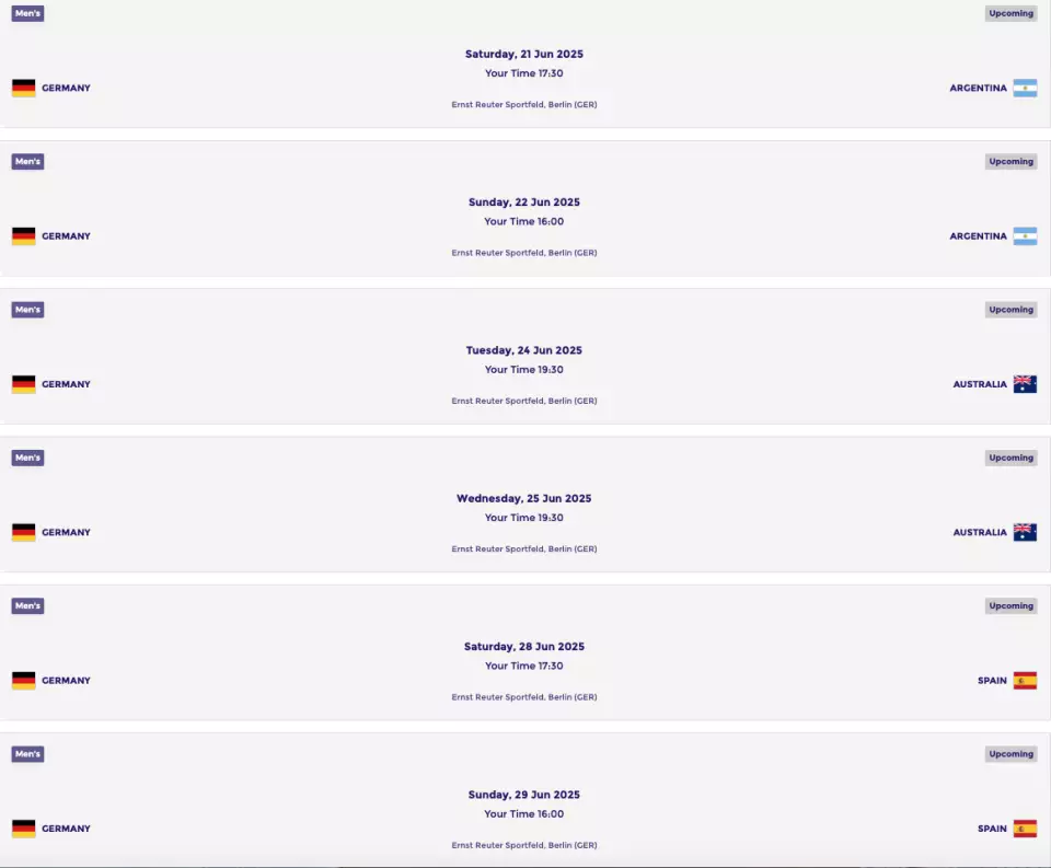 Wie in der letzten Saison treffen die HONAMAS zweimal auf jede andere Nation. Im Vergleich zur letzten Saison gibt es nur eine kleine Änderung. Das Team Großbritannien wird durch das Team England ersetzt. Gleich zu Beginn der neuen Saison gibt es ein echtes Highlight. Es kommt zur Revanche für das verlorene Olympia-Finale und das Team von Bundestrainer André Henning trifft gleich zweimal auf die Niederländer. Auch der Vize-Weltmeister aus Belgien wartet im ersten Mini-Turnier auf die HONAMAS. Die deutsche Nationalmannschaft wird in Berlin je zwei Spiele gegen Argentinien, Australien und Spanien bestreiten. Es wird das größte Miniturnier der Saison 24/25 für die HONAMAS und gleichzeitig der Saisonabschluss.