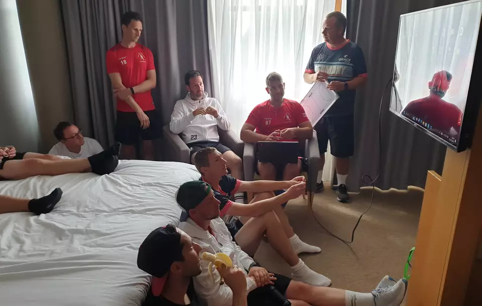 Last but not least ist der Discounter aka „Das Deutsche Haus“ zu erwähnen, der direkt neben dem Hotel seine Baracke aufgestellt hat. Wie eine Ameisenstraße, gebildet von Spielern aller deutschen Masters Teams, wirkte die Nachschubversorgung an Wasser, Obst und Gleitcreme (wegen des rauen Kunstrasens). Gut klimatisiert war er auch. Das wollen die M55 in Auckland nächstes Jahr wieder haben. Mit dem wiedererlangten Selbstwertgefühl kann dann bei der WM 2024 nichts mehr schieflaufen. (DK)