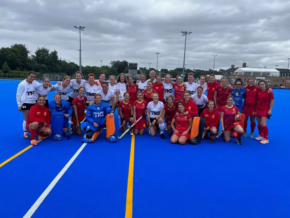 Im zweiten EM-Spiel treffen wir auf die Gastgeberinnen. England gilt auch in der W35-Konkurrenz als Topfavorit. Nach unserer Vorbereitung an Pfingsten wussten wir sehr genau, was auf uns zukommt und welche Aufgaben es zu erfüllen gibt. Bis ins Detail haben wir das in der Spielbesprechung durchgespielt, bis diese durch eine Feueralarm-Übung im Hotel kurzzeitig unterbrochen worden ist. Nichtsdestotrotz machten wir uns danach gut vorbereitet auf den Weg zum Platz, um vor unserem Spiel auch die anderen Masters-Teams vom Spielfeldrand noch zu unterstützen. Um Punkt 16 Uhr starten wir dann topmotiviert in unser heutiges Spiel; von den Seiten und von der Clubhaus-Terrasse gibt es zahlreiche Unterstützung von allen anderen deutschen Masters-Teams - vielen Dank dafür! Von Sekunde 1 an sind wir im Spiel und belohnen uns schnell mit dem 1:0, als wir gut in den Kreis kommen und Elli im Nachsetzen den Ball über die Torlinie bringt. Das ist die erhoffte Führung gegen die amtierenden Weltmeisterinnen, durch die der Druck auf deren Schultern noch größer werden sollte. Sehr diszipliniert halten wir an unseren Spielprinzipien fest, viele Dinge klappen gut. Im Großen und Ganzen lassen wir uns nicht aus der Ruhe bringen und verteidigen einzelne brenzlige Szenen souverän. Dass in der 28. Minute dann eine Strafecke der Engländerinnen in unserem Tor landet, schmälert unsere positive Einstellung nicht. Wir machen einfach weiter und erspielen uns ebenfalls weitere Chancen, es geht hin und her. Als Manu mit dem Schläger einer Engländerin weiterspielt, erhoffen wir uns kurz einen Vorteil durch die entstandene Verwirrung bei den Gegnern, allerdings hält diese nicht lange an! ;-) Erneut eine kurze Ecke bringt uns in der 47. Minute in Rückstand, leider gefolgt vom 1:3 nur fünf Minuten später.