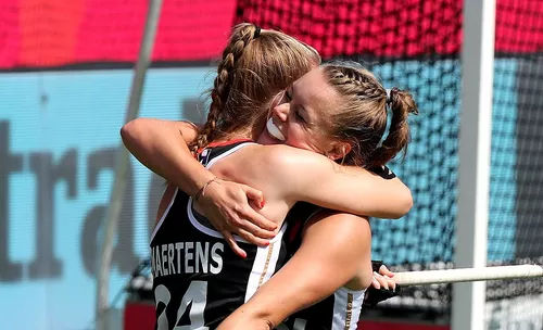 Doch dann eine Weltklasse-Aktion von Pia Maertens, die eine Flanke hinter der Viertellinie mustergültig verarbeitete, in den Kreis zog und von halblinks mit der Rückhand unhaltbar unter die Latte zum 0:1 (8.) einschoss. Kurz darauf hatte Hannah Gablac die Riesenchance für das 0:2, als sie am langen Pfosten im Fallen die Kugel nur um Zentimeter neben den Pfosten setzte. In der 13. Minute nahm das deutsche Team den Videobeweis für eine Strafecke, die es auch gab. Doch der Schlenzer von Rebecca Grote war zu unplatziert und von McFerran einfach zu parieren. Im Eckenkonter sah Amelie Wortmann Grün für ein Tackling.