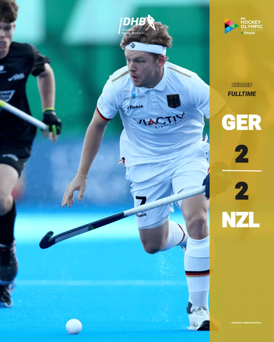 Zu Beginn des letzten Viertels ging es hin und her. Ein starker Lauf von Teo Hinrichs konnte erst im Kreis Neuseelands verteidigt werden. Anschließend waren die HONAMAS aufgrund einer grünen Karte in Überzahl. Nach einer Balleroberung von Moritz Ludwig startete Deutschland über Mats Grambusch und Christopher Rühr einen Konter. Letztendlich kam Niklas Wellen zum Abschluss, aber konnte den kanadischen Torhüter nicht überwinden. Deutschland erspielte sich in der Folge mehrere gefährliche Szenen – allerdings ohne Belohnung. Neuseeland hatte ebenfalls gefährliche Kreiseintritte, aber die HONAMAS konnten diese immer wieder verteidigen. Kurz vor Schluss kam Justus Weigand noch einmal gefährlich zum Abschluss, aber einmal mehr war der neuseeländische Torhüter die Endstation. Somit endete das letzte Viertel torlos und es blieb beim 2:2. Nun geht es am Donnerstag, 18. Januar um 11:00 Uhr, gegen Chile um den Halbfinal-Einzug.