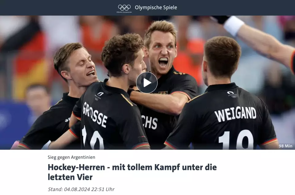 T-Online (SID): "Unfassbar geil" – Deutschland erreicht Hockey-Halbfinale
