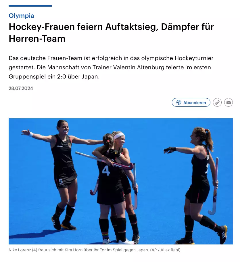 Zeit online: Deutsche Hockey-Frauen gewinnen gegen Japan