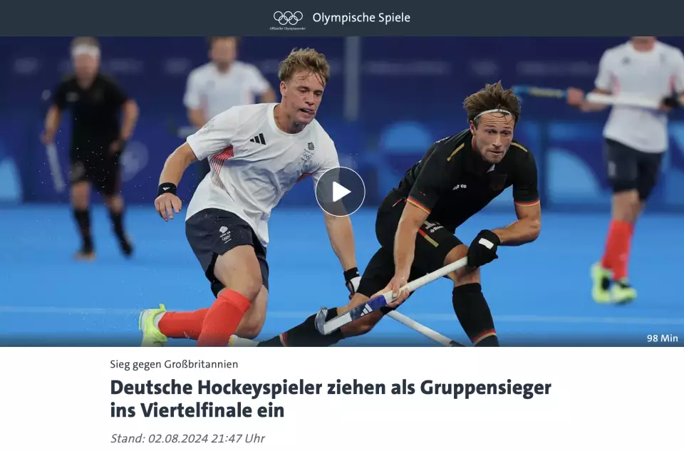 Zeit Online (dpa): Hockeyherren gewinnen letztes Gruppenspiel gegen Großbritannien