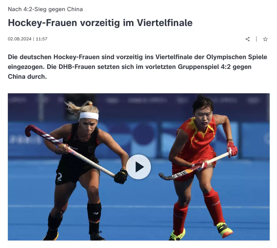 Eurosport: Olympia 2024 - Hockey: Deutschlands Frauen schießen drei Tore in sechs Minuten - China überfordert