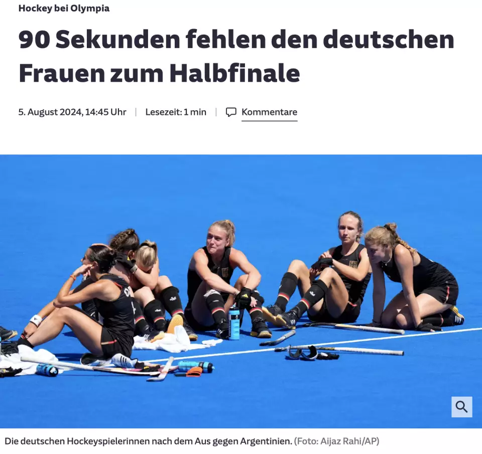 Süddeutsche: Hockey bei Olympia: Deutsche Frauen scheiden dramatisch gegen Argentinien aus
