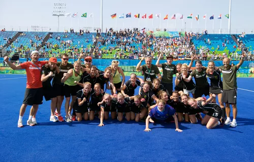 19.08.2016 - Mit einer sehr starken zweiten Halbzeit hat das deutsche Damenteam im Spiel um Platz drei in Rio die olympische Bronzemedaille gewonnen. Gegner Neuseeland hatte in Halbzeit eins mehr vom Spiel und mehr Chancen, doch mit einer großen Leistungssteigerung holten die Mülders-Schützlinge eine 2:0-Führung durch Tore von Charlotte Stapenhorst und Lisa Marie Schütze heraus. Neuseeland kam zwar noch einmal heran, aber die Abwehr um die starke Kristina Reynolds brachte die 2:1-Führung über die Zeit. Es ist nach Silber 1984 und 1992 sowie Gold 2004 die vierte Medaille einer deutschen Damenmannschaft bei Olympischen Spielen.