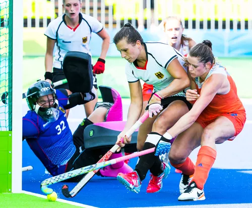 17.08.2016 - Im wohl besten Spiel einer deutschen Damenmannschaft seit dem Olympiasieg 2004 hat das deutsche Team das Halbfinale der Olympischen Spiele in Rio mit viel Pech erst in der Verlängerung des Penaltyschießens verloren. Die Deutschen führten früh durch einen Eckennachschuss von Lisa Marie Schütze, kassierten aber den Ausgleich durch Maartje Paumens Ecke kurz vor der Halbzeit. Mit großartigem Kampf und trotz doppelter Unterzahl in der Schlussphase hatte das Ergebnis auch beim Schlusspfiff Bestand. Und dann hielt in einem Duell zweier Weltklasse-Torfrauen Joice Sombroek leider einen Penalty mehr als Kristina Reynolds, die drei Penaltys abwehrte. So geht es am Freitag um 17 Uhr deutscher Zeit nun um Bronze fürs DHB-Team gegen Neuseeland, das sein Halbfinale mit 3:0 gegen Großbritannien verlor.