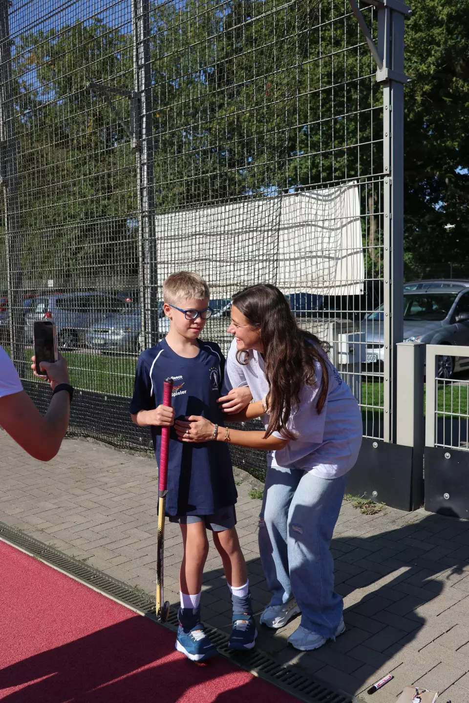 Ein absolutes Highlight war der Besuch von zwei besonderen Überraschungsgästen: Schlenzi, das beliebte Maskottchen, das für viele Lacher und jede Menge gute Laune sorgte, und niemand Geringeres als die Nationalspielerin und Specialhockey Botschafterin Selin Oruz. Sie nahm sich viel Zeit für die Kinder, für ihre Fragen, ihre Fotowünsche und ihre Umarmungen. Sie berichtete von ihren Erfahrungen als Nationalspielerin und gab ihre eigene Begeisterung für den Hockeysport weiter. Ihr Besuch war für die Kinder ein besonderes Erlebnis!