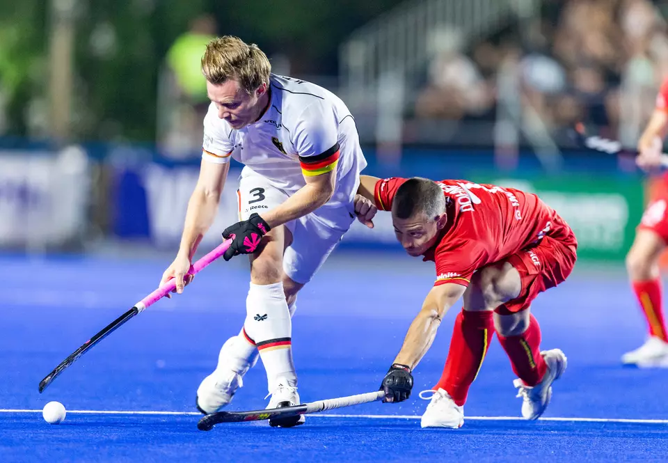 Knapp 30 Sekunden dauerte es und die Belgier kamen innerhalb des Kreises zum Abschluss. Diesmal war es kein Problem für Stadler, weil der Schuss zu unplatziert war. Anschließend hatten die Honamas eine Umschaltsituation: Christopher Rühr suchte Marco Miltkau, aber die Belgier kamen in letzter Sekunde dazwischen. In den weiteren Minuten ließ Deutschland defensiv nicht mehr viel zu und stand - wie im ersten Viertel - sicher. In der 35. Minute gab es die gelbe Karte für Thies Prinz und die Honamas mussten fünf Minuten in Unterzahl spielen. In der nächsten Aktion wurde ein starker langer Pass auf Johannes Große gespielt, der zu Fall gebracht wurde. Allerdings hatte Deutschland den Videobeweis nicht gezogen. Im Folgenden erhöhte Belgien erneut den Druck, aber Deutschland verteidigte weiterhin konzentriert. In der 40. Minute konnten die Honamas für Entlastung sorgen und erhielten eine kurze Ecke, die allerdings verteidigt werden konnte. Auf dem Platz gab es immer mehr hitzige Duelle zwischen den Honamas und Belgiern. Auch das dritte Viertel endete torlos.