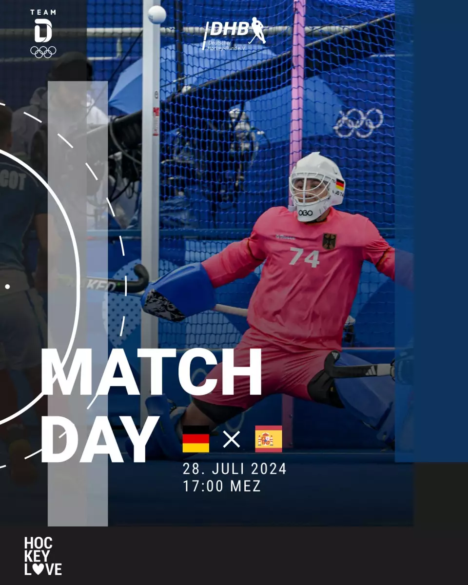 Ohne Christopher Rühr gingen die HONAMAS in die zweite Partie dieser Olympischen Spiele. Der Torjäger wurde vom Weltverband FIH nach einem Foulspiel in der Auftaktpartie für ein Spiel gesperrt. Dennoch war die deutsche Mannschaft in der Offensive gut besetzt und so hatte Marco Miltkau in der vierten Minute die erste Großchance, die der spanische Keeper parierte. Das Spiel war nicht so schwungvoll wie das Auftaktspiel der deutschen Herren, dennoch kontrollierte Deutschland das Spiel. Viele Szenen spielten sich im Mittelfeld ab, Chancen blieben im ersten Viertel Mangelware. In der 13. Minute nutzte Niklas Wellen den Videobeweis und die DHB-Auswahl bekam eine Strafecke zugesprochen. Gonzalo Peillat trat an, doch Luis Calzado glänzte erneut. Das erste Viertel endete torlos.