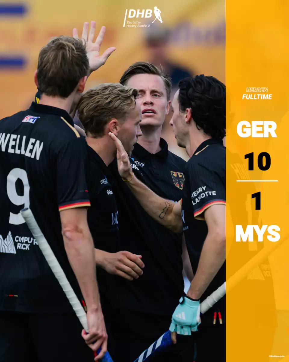 Zu Beginn der letzten 15 Minuten brachte sich Malaysia mit einer Strafecke auf die Anzeigetafel. Nun waren sie am Drücker und Jean Paul Danneberg musste sich in der nächsten Aktion auszeichnen. Doch die HONAMAS kämpfte sich zurück und Justus Weigand erzielte in der 50. Minute nach einer schönen Kombination das 8:1. Das 9:1 erzielte wenige Minuten später (53. Minute) Marco Miltkau nach erneuter Vorarbeit von Niklas Wellen. Den Schlusspunkt setzte das Geburtstagskind. Thies Prinz traf in der 59. Minute zum 10:1-Endstand.