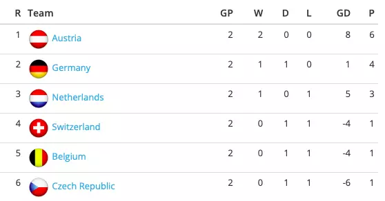| 18:15 | Österreich vs. Belgien | 6:2 |