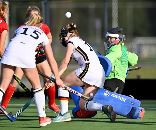 Belgien hatte durchaus auch ein paar gute Chancen, aber bis auf einen Treffer von Anne Sophie Roels in der 52. Minute waren Mali Wichmann und Chiara Vischer, die sich viertelweise im deutschen Tor abwechselten, nicht zu überwinden. Und da war es im Gewühl vor Tor eher das unglückliche Abfälschen durch einen deutschen Schläger, das Vischer nicht an die Kugel kommen ließ. Ein mustergültiger Konter über Fleschütz und Sophia Schwabe, die vom eigenen Viertel startend einen doppelten Doppelpass übers Feld zelebrierten, brachte schließlich das 1:3, als Schwabe in den Flachschuss von Fleschütz reinrutschte und per Stecher den Treffer für sich verbuchte.