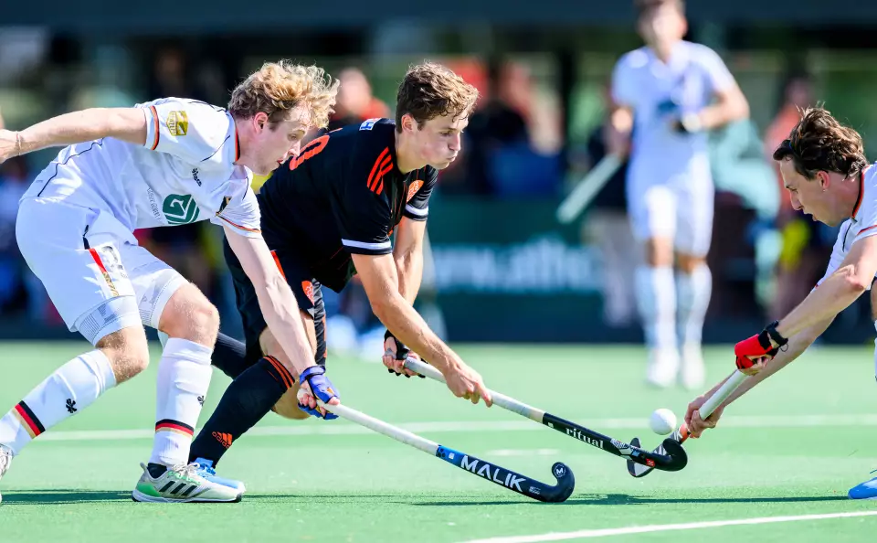 In der ersten Hälfte neutralisierten sich die beiden europäischen Schwergewichte in der Neuauflage des EM-Finals 2022. Die gefährlichen Szenen in den Kreisen ließen sich an einer Hand abzählen, weil beide Teams sehr aufmerksam verteidigten. Auf deutscher Seite waren Maximilian Stahmann (17.) und Leon Lindemann (23.) einem Torerfolg am nächsten, verpassten aber aus dem Spiel heraus. Noch näher dran am 1:0 waren die Holländer, als sie ihre dritte Strafecke an die Latte des von Florian Simon gehüteten deutschen Kastens (28.) knallten. Torlos ging es in die Halbzeitpause.
