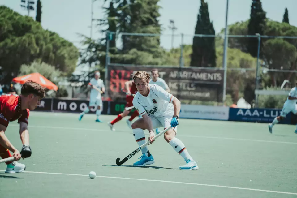 Wie die Juniorinnen erwischten auch die Junioren einen sensationellen Start in die Europameisterschaft. In der sechsten und siebten Minute gingen sie durch Tore von Ben Hasbach und Jakob Brilla in Führung. Sie spielten mutig nach vorne und kamen zu einigen Kreiseintritten. Im zweiten Viertel wurden die Belgier stärker und tauchten immer wieder vor dem Tor von Florian Simon auf. In der 26. Minute kassierten die Eagles den Anschlusstreffer und es ging mit einem 2:1 aus deutscher Sicht in die Halbzeitpause.