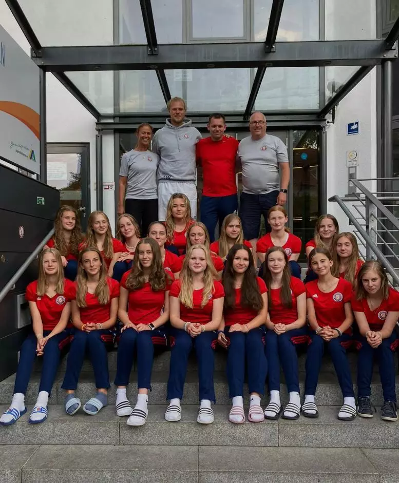 Staff: Ian Haley (Landestrainer), Ira-Marina Rheidt (Betreuerin), Friederike Sievers (Trainerin)